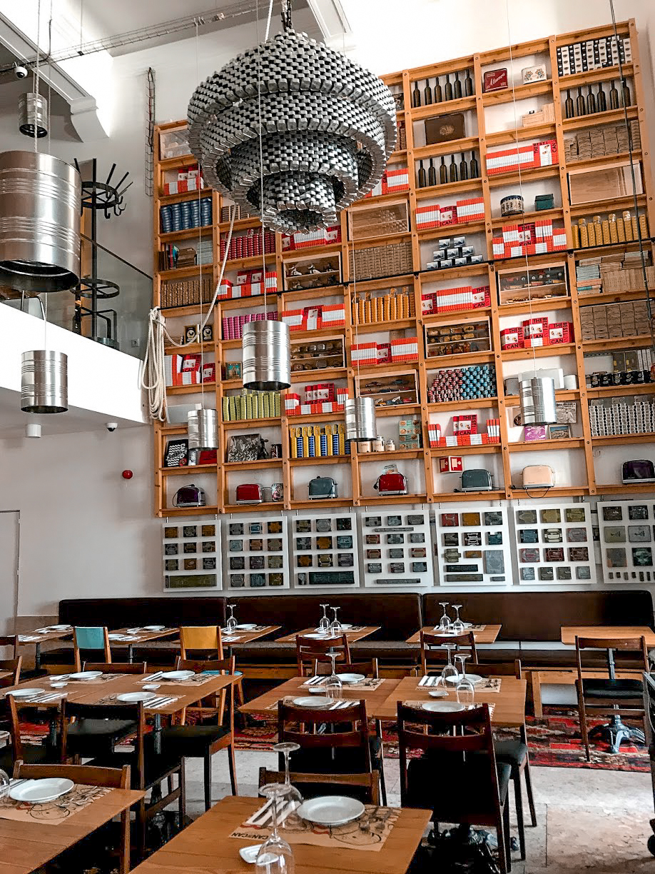 You’ll find this fun restaurant, CAN the CAN, in the busy Praça do Comércio. Everything from the food to the inside decor is made from aluminum cans. They have great appetizers and small plates, but this champagne sangria was the highlight on a hot day. Being in a tourist area makes this place pricier than the others on our list, but here you’re paying for the location and unique decor.